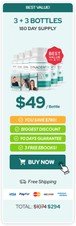At this moment you can order Synadentix supplement for 82% OFF + FREE Shipping. This is a Limited-Time Offer and it won’t be available for long.